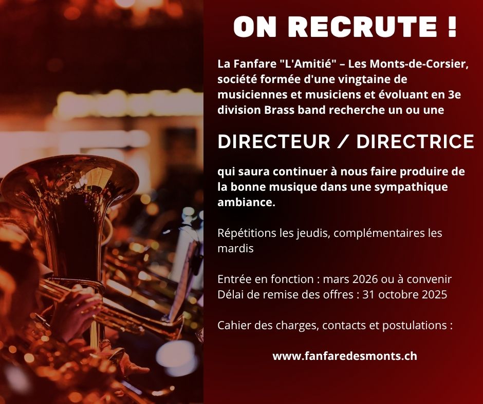 Vous jouez d’un instrument et avez envie d’intégrer une société de musique qui allie un travail de qualité dans une ambiance sympathique ? Vous êtes au bon endroit. Prenez contact avec notre directeur et venez participer à une répétition, le jeudi soir à la chapelle des Monts-de-Corsier. Libre à vous ensuite de décider.